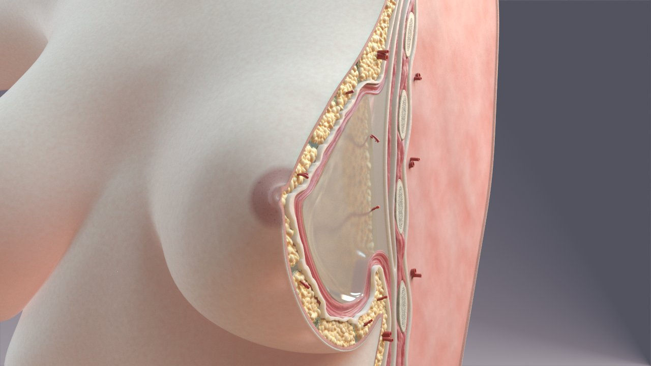 המודל מציג את הפטמה, רק מת השומן, בלוטות וצינוריות חלב, עצמות, שריר ובלוטת לימפה.